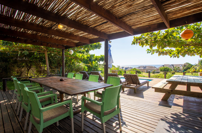 The house is situated in Ponta Mamoli on Baleia Azul Estate. The accommodation is built in the form of a lodge. The 'lodge type' layout features 5 separate pods. Consisting of 4 en-suite bedrooms. Each bedroom has the following: Luxury Cloud Nine king-size beds A loft room with a further 2 single beds A bathroom consisting of a large shower, a separate toilet, and a hand basin. All bedrooms are air-conditioned. Please note that the lofts are relatively small but are more than suitable for children. Adults can definitely sleep in the lofts but will be unable to stand up straight. (Approx height 1.5m) The 5th pod contains the main living/dining and kitchen areas. A boma at the back for those windy days A built-in braai on the main deck A pool in the main deck DSTV in the central living area Free wifi is available at the house, just ask the staff for the password. All bedrooms and central facilities overlook the sea. Laundry can be done at R150 per laundry bag Please note that the lofts are relatively small but are more than suitable for children. Adults can definitely sleep in the lofts but will be unable to stand up straight. (Approx height 1.5m) A guest bathroom is also available with a bath, toilet, and hand basin. This unit sleeps up to 16 people. Housekeeping staff will be there from 8H00 to 13H00 duties include: washing dishes, make beds, clean inside and outside. All cleaning materials are supplied. All bath towels will be supplied but not beach towels. There is an entry and exit permit that you need to get at the entrance gate to the Estate, cost is R100. Remember to hand this permit back when you leave and collect your R100. *There is a public launch site available at R100 per launch.