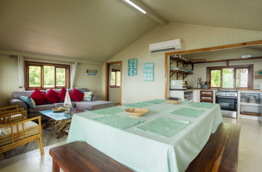 Mar Azul 27A is a 3-bedroom cottage situated on the highest point of Mar Azul Estate in Ponta Malongane. This cottage has breathtaking sea views. Mar Azul 27A consists of 4 units, all fully air-conditioned. 3 of the units are en suite bedrooms, each with a private outside shower, with hot running water. Each unit has 1 queen-size bed, all linen is supplied. There is 1 mini bar fridge in each bedroom. Each en suite bedroom has a wrap-around wooden veranda with sea views to die for. The en suite bathrooms have a bath, toilet, and hand basin. 2 extra mattresses can be arranged, so the house can sleep a total of 6 adults and 2 kids under the age of 12. The 4th unit is the lounge, kitchen, and living area. The kitchen is fully equipped for self-catering and has a microwave, electric oven, 4-plated gas stove, dishwasher, and all the crockery, cutlery, pots, pans, etc required for self-catering. The lounge area has couches and a coffee table. The living area is air-conditioned. The wooden deck outside the lounge area has sun tanning beds with mattresses and a gas braai. Gas Braai Note: The gas braai is only used for gas braai purposes, if it is used for any other means i.e.; charcoal braai or log fire, then the guests will be charged for a replacement unit. The unit runs off borehole water, so there will be a smell and discoloration in the water at times. This unit does have a large number of stairs (approximately 190) from the car park to the unit. The storeroom has a chest freezer as well as a normal-sized fridge, washing machine, and tumble dryer. There are no TVs or Wifi. The units also do not have mosquito nets - therefore guests are to bring along their own mosquito repellent. Please take note that if you are booked in on Mar Azul Estate and have a boat, jet ski, or quad bike, you can park 1 of 2 places, see below: Park at the security gate (bottom of the hill) R300 a day Park at the top of the hill (communal parking) - free If you decide to park at the security gate then ensure that you have enough cash to pay for the parking on your departure date. To try and keep everyone safe and happy, please take note of some of our important House Rules: The speed limit in the resort is 10km/hr. Please respect the 10:30 pm noise restriction - Loud music is not much fun when you are not at the party. No fireworks are allowed.. Nearly all of our houses are made of wood and this could go horribly wrong. No children under the age of 18 are allowed to ride a quad bike. (Please note that this is Mozambiquean law, not our rules). No littering. We know this sounds really obvious, but you would be amazed. And, we would really appreciate it if you removed two pieces of rubbish from the beach each time you go. No unattended open fires. Yip, we already said it, the houses are made of wood and we don't want to light up the sky. There is a fish cleaning/gutting station near security. Please use this area so we can contain the smell and keep it clean so you don't get a fly in your drink. For security reasons, all casual labor must be sourced via the Mar Azul Manager. No access card, no entry. Guests must advise Security in advance of any visitors. If their name is not at Security, they will not be allowed access. Abuse of the Security staff will absolutely not be tolerated. They are here to look after us, so please treat them with respect. Thank you - we hope you have a wonderful holiday with us.