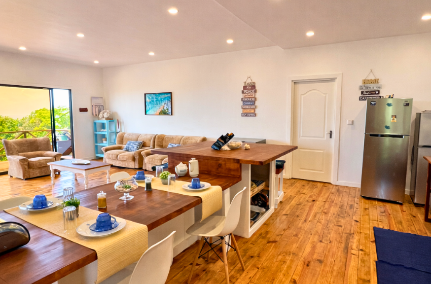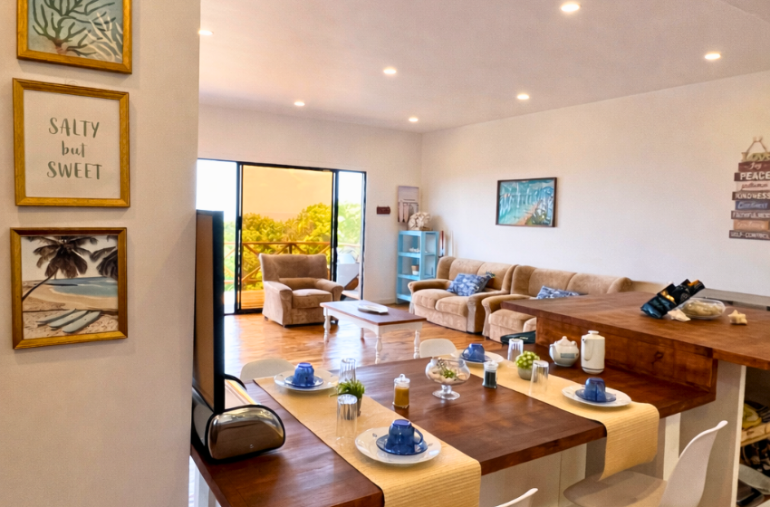 Salt & Sun is a relaxed, pet-friendly holiday home situated on the elevated Signal Hill housing estate in Ponta Malongane. This is a special addition to our GoBundu collection – the very first pet-friendly house on our books, making it ideal for families and couples who don’t want to leave their dogs behind. While the house is not directly on the beachfront, it enjoys uninterrupted sea views and is just a 5-minute walk to the beach via a sandy path and wooden walkway that leads straight onto the shoreline. The house comfortably accommodates small families, couples, or a small group. It offers two air-conditioned bedrooms, each with its own en-suite bathroom, as well as an additional bathroom. The open-plan living area flows onto a private balcony with a dining table, creating an easy indoor-outdoor living space with beautiful ocean views. The kitchen is well equipped for self-catering and includes a coffee machine. Guests must please bring their own Delta coffee capsules. The house also offers free Starlink WiFi, making it easy to stay connected during your stay. Outside, guests can enjoy a lush garden, seating areas, and braai facilities, with sea views visible from various points around the property. Signal Hill Estate offers excellent shared amenities, including Sunrise Voodoo Restaurant, an on-site restaurant serving daily meals. The restaurant features a swimming pool, and guests may request permission from the restaurant owners to make use of it. Right at the estate entrance gate, you will also find Captain Gus Restaurant, which has a swimming pool and a water slide, making it a great spot for children. The estate further offers daily housekeeping, secure on-site parking, and full-day security. Salt & Sun is located approximately 1.5 km from Ponta Malongane beach and 3.3 km from Ponta do Ouro beach, offering a peaceful setting with easy access to both areas. Pet-friendly note: Well-behaved dogs are welcome. All dogs must be kept on a leash at all times, as there are other dogs on the estate.