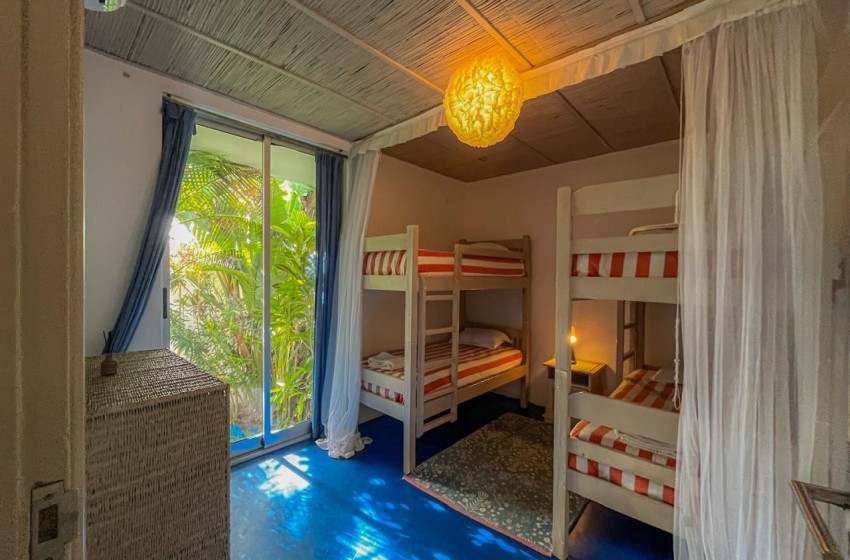 Tucked away in a quiet residential part of Ponta do Ouro, just 20 metres from the beach, Surfer’s Spot is an easy, laid-back escape ideal for families or groups looking to surf, unwind and enjoy beach life at its best. This comfortable beach house is located just one home back from the main swimming bay and a short walk from local markets, restaurants, and surf spots — including one of Africa’s longest waves. Surfer’s Spot sleeps up to 8 guests in three air-conditioned bedrooms: • Bedroom 1: Queen bed with en suite bathroom (large shower, toilet, double basin) – Sleeps 2 • Bedroom 2: Queen bed - Sleeps 2 • Bedroom 3: Two bunk beds – Sleeps 4 • Bedrooms 2 and 3 share a bathroom with shower, toilet, and basin • All beds have custom-made mosquito nets The home includes a separate children’s lounge with books, a TV, and soft seating — the perfect space for little ones to relax and play while adults enjoy the main lounge or outdoor entertainment area. The fully equipped kitchen includes: • Gas hob and electric oven • Microwave • Fridge and freezer • Coffee machine • Kettle • Washing machine • All cutlery, crockery, and cookware for self-catering The open-plan living and dining area flows through sliding doors into a lush, private garden with shaded seating and a built-in braai. A large wooden dining table seats 9 guests comfortably, creating an inviting outdoor space to gather after long beach days. WiFi The house has a wifi router; you need to buy data. 1 Gig costs around 50 meticais. Private Swimming Pool Surfer’s Spot now features its own private swimming pool — ideal for cooling off in the afternoons or enjoying relaxed poolside days in the sun. Additional Facilities: • Air conditioning in all bedrooms • Bed linen and bath towels provided (bring your own beach towels) • ZAP TV with USB port • Outdoor shower • Daily housekeeping • Secure parking Beach Access & Activities A short 20-metre walk brings you to the beach, perfect for surfing, swimming, or long barefoot strolls. Ponta do Ouro offers a vibrant mix of surf, local flair, and family-friendly charm — with dive centres, restaurants, markets, and essential amenities nearby. Travel Information Surfer’s Spot is easily accessible without the need for a 4x4 vehicle. The Kosi Bay border is just a 30-minute drive away. Whether you’re a surfer chasing waves or a family seeking a relaxed coastal break, Surfer’s Spot offers the perfect base to enjoy the warm waters and easy rhythm of life in Southern Mozambique.